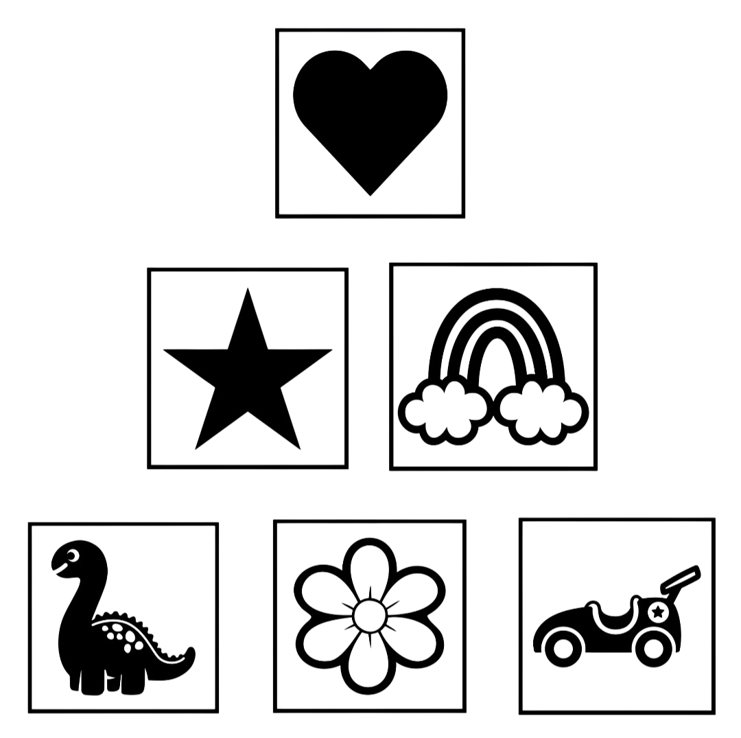 - Er zit altijd een kader om het figuurtje heen in dezelfde kleur.