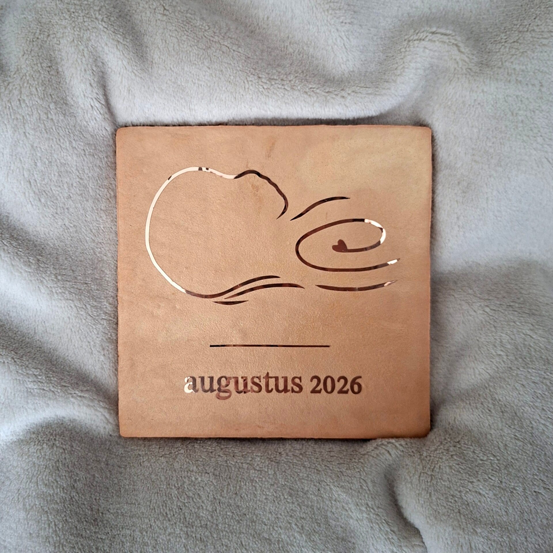 De echo wordt vertaald naar een lijntekening en aangebracht op een keramieken tegel van 13 × 13 cm. Een tastbare herinnering aan het moment waarop jullie de zwangerschap bekendmaken.